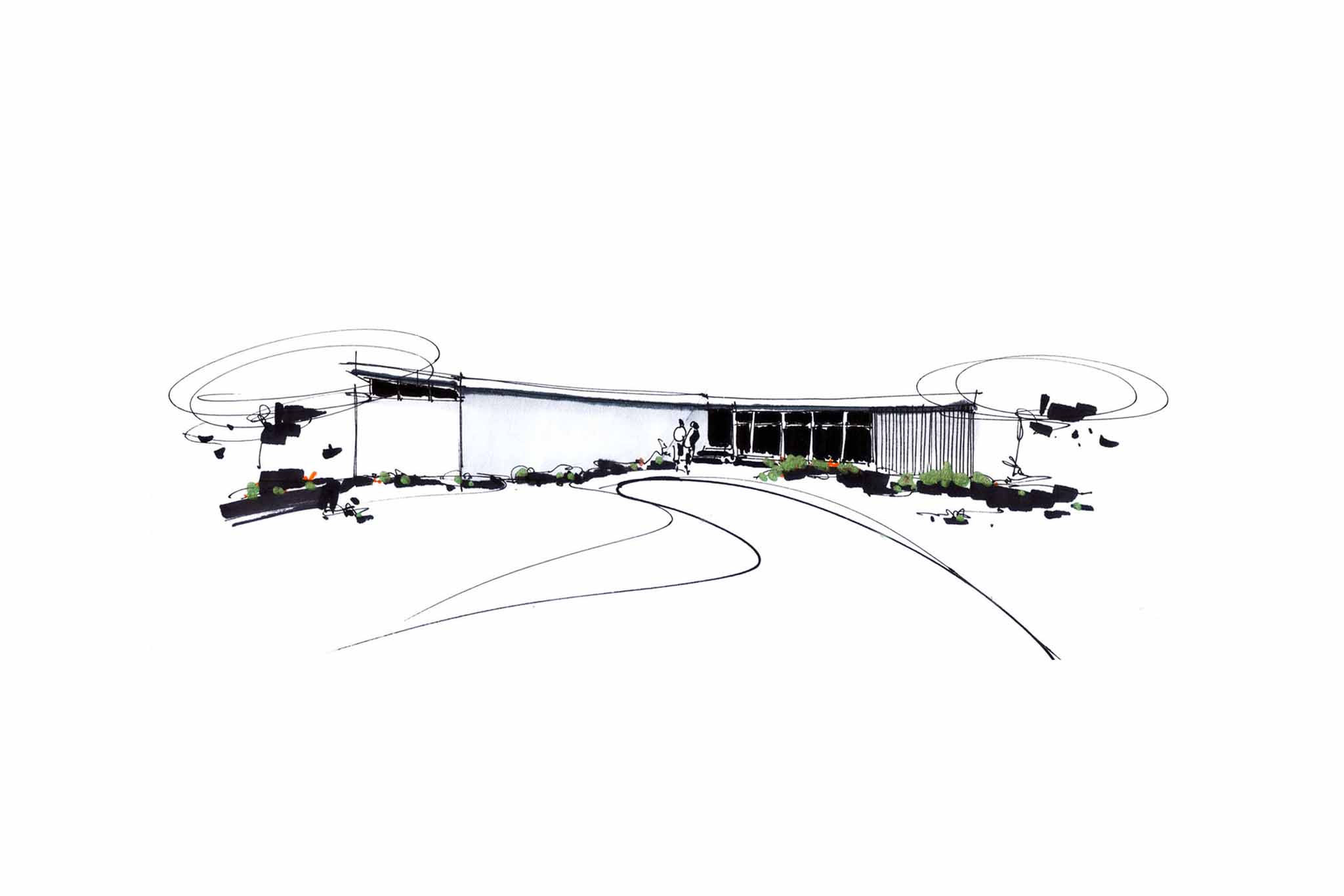 Propuesta de una casa de un nivel con formas curvas y suaves, como la geografía que la rodea.