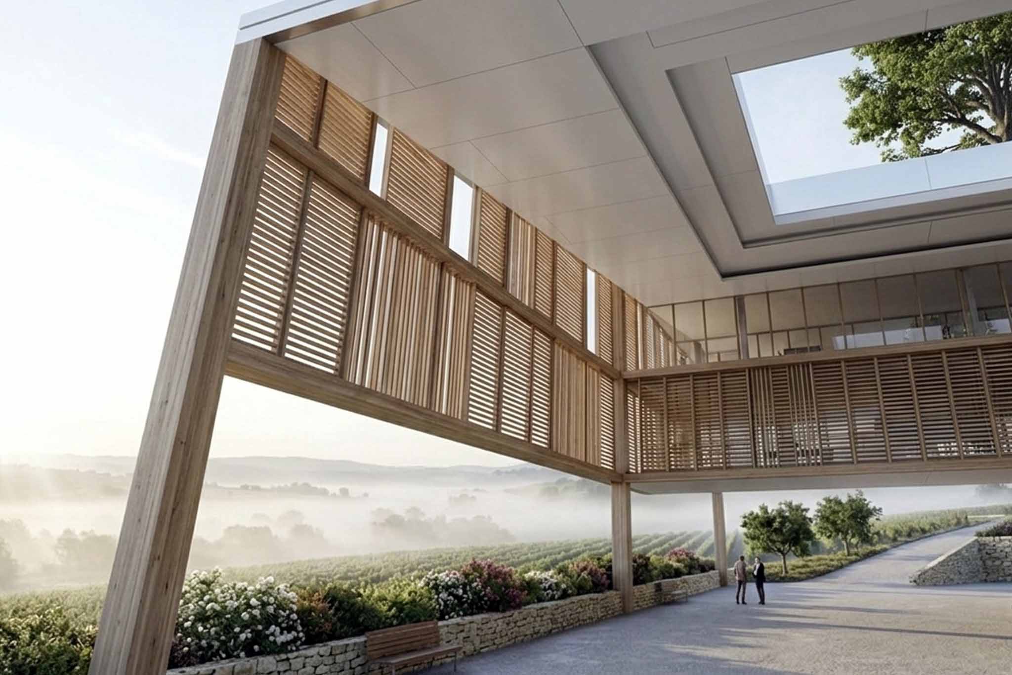 En su corazón, los patios con árboles maduros funcionan como santuarios que conectan el espíritu científico con la serenidad del bosque. El delicado palillage de madera filtra la luz, creando una atmósfera de recogimiento que eleva la labor de investigación a una experiencia espiritual.