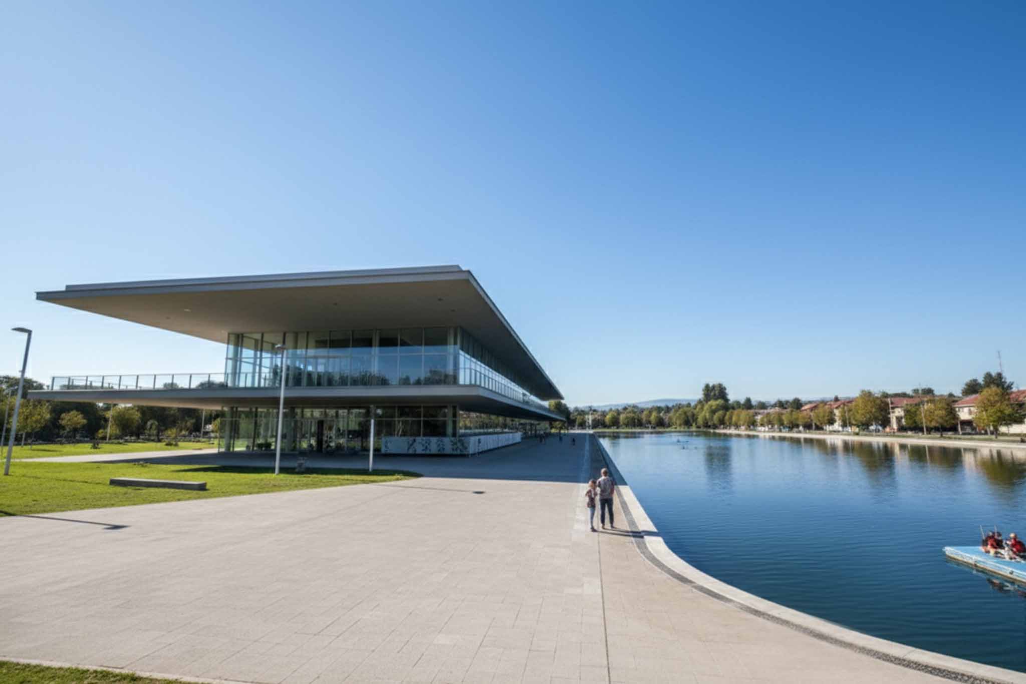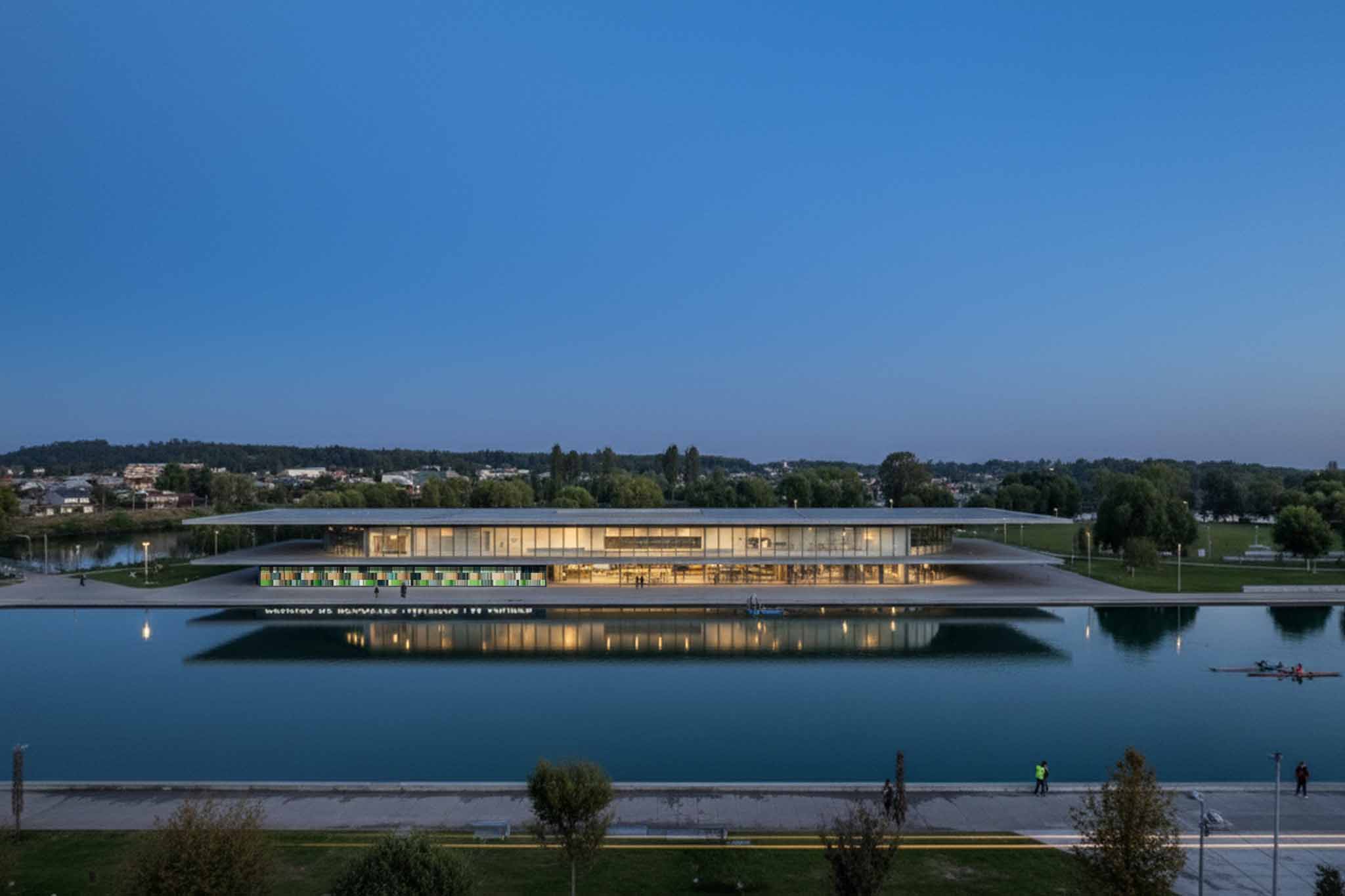 El edificio se manifiesta como un umbral horizontal que enmarca el paisaje sin interrumpirlo, estableciendo un vínculo directo con el cauce fluvial. Su estructura suspendida funciona como un mirador que invita a la contemplación silenciosa del entorno y el agua.