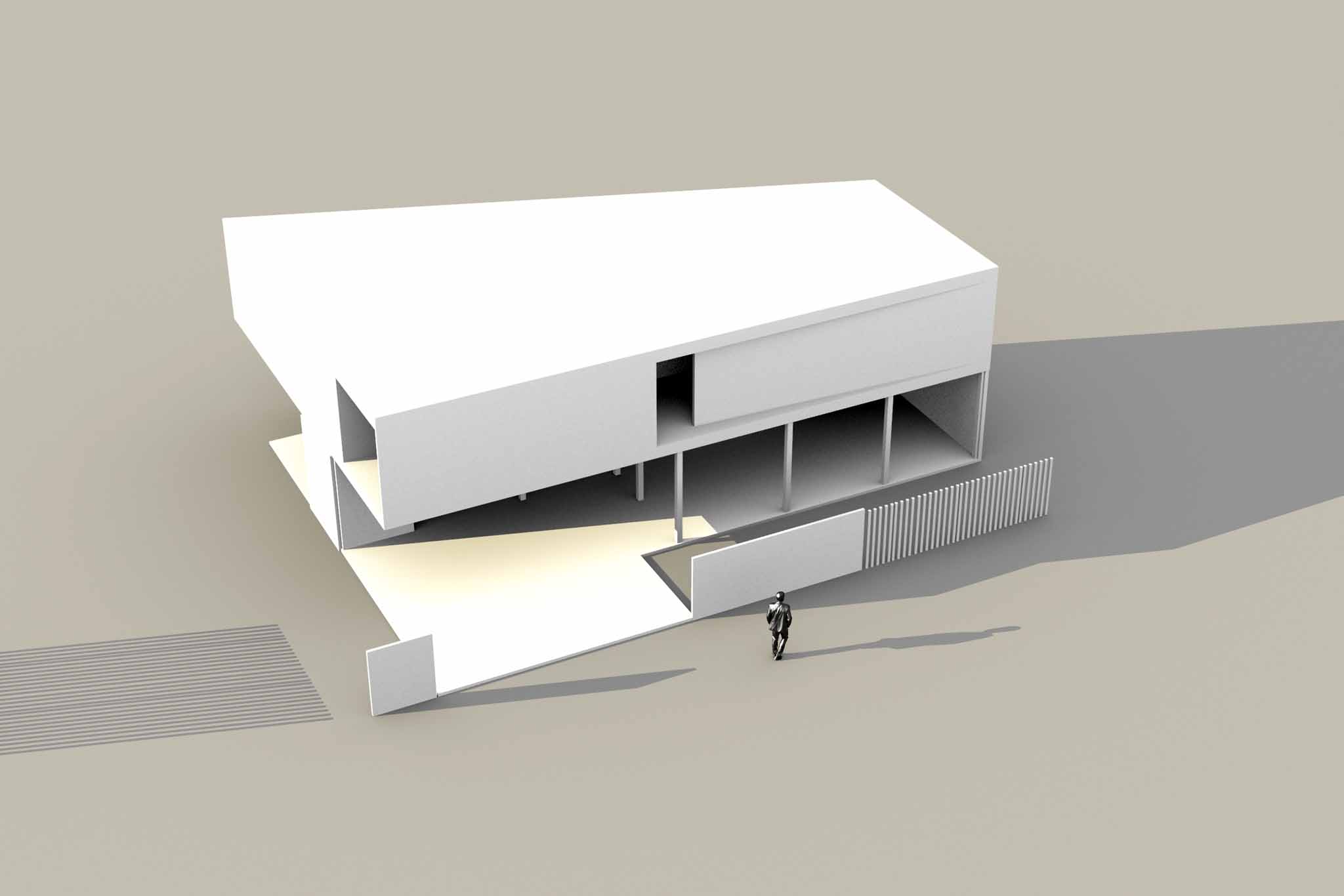 Su fachada cerrada, abstracta y monolítica actúa como un umbral espiritual: