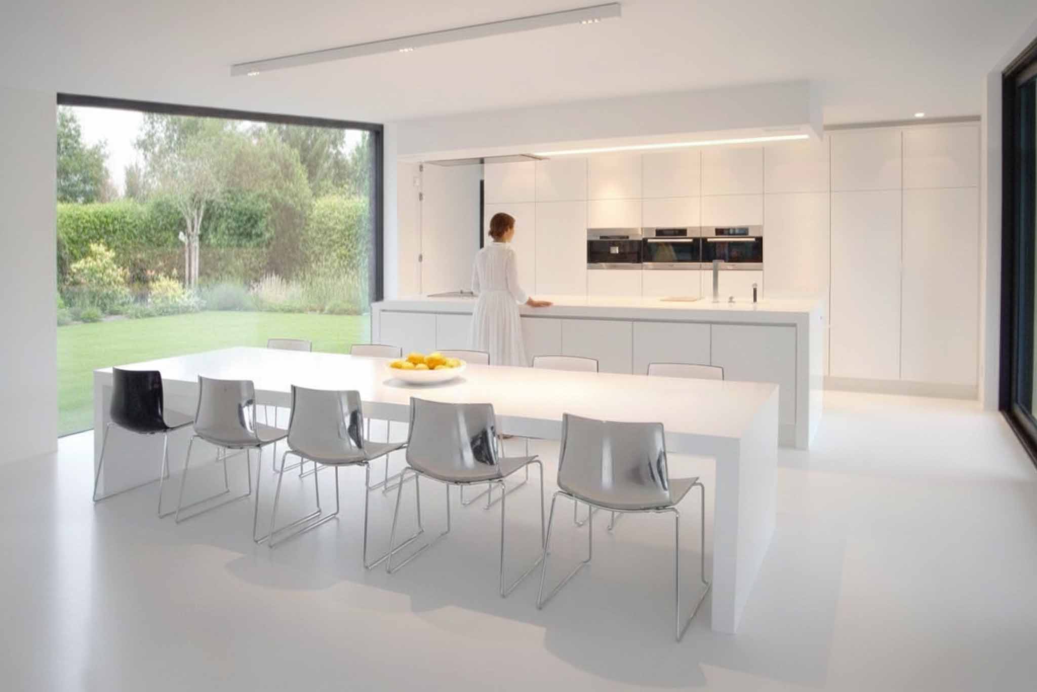 Los volúmenes blancos, abiertos y silenciosos, se disuelven entre luz, vidrio y verde, creando una atmósfera de calma, equilibrio y vida cotidiana en conexión directa con el paisaje.