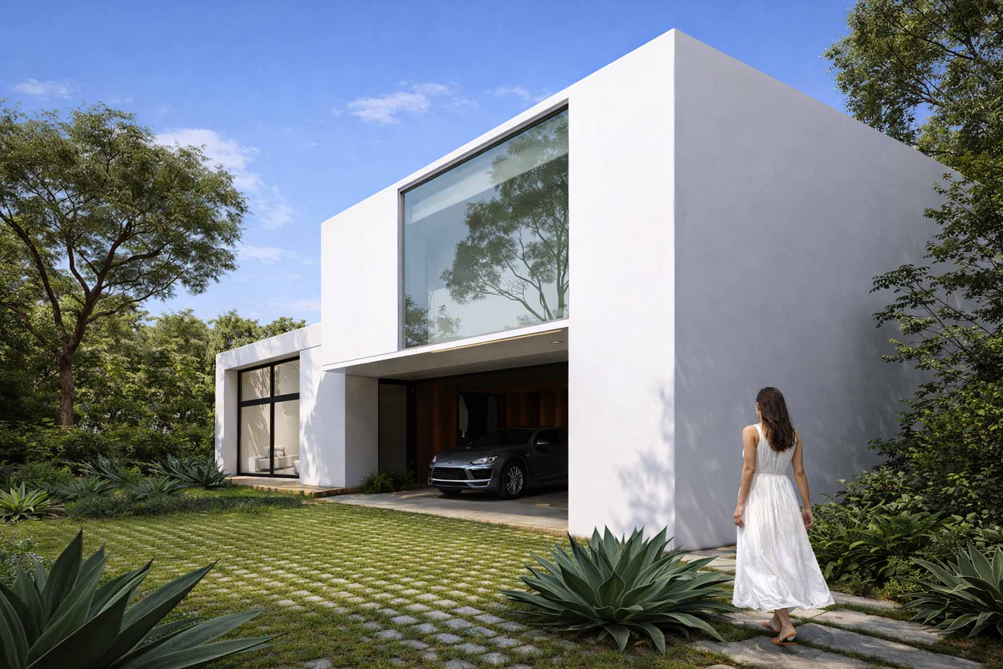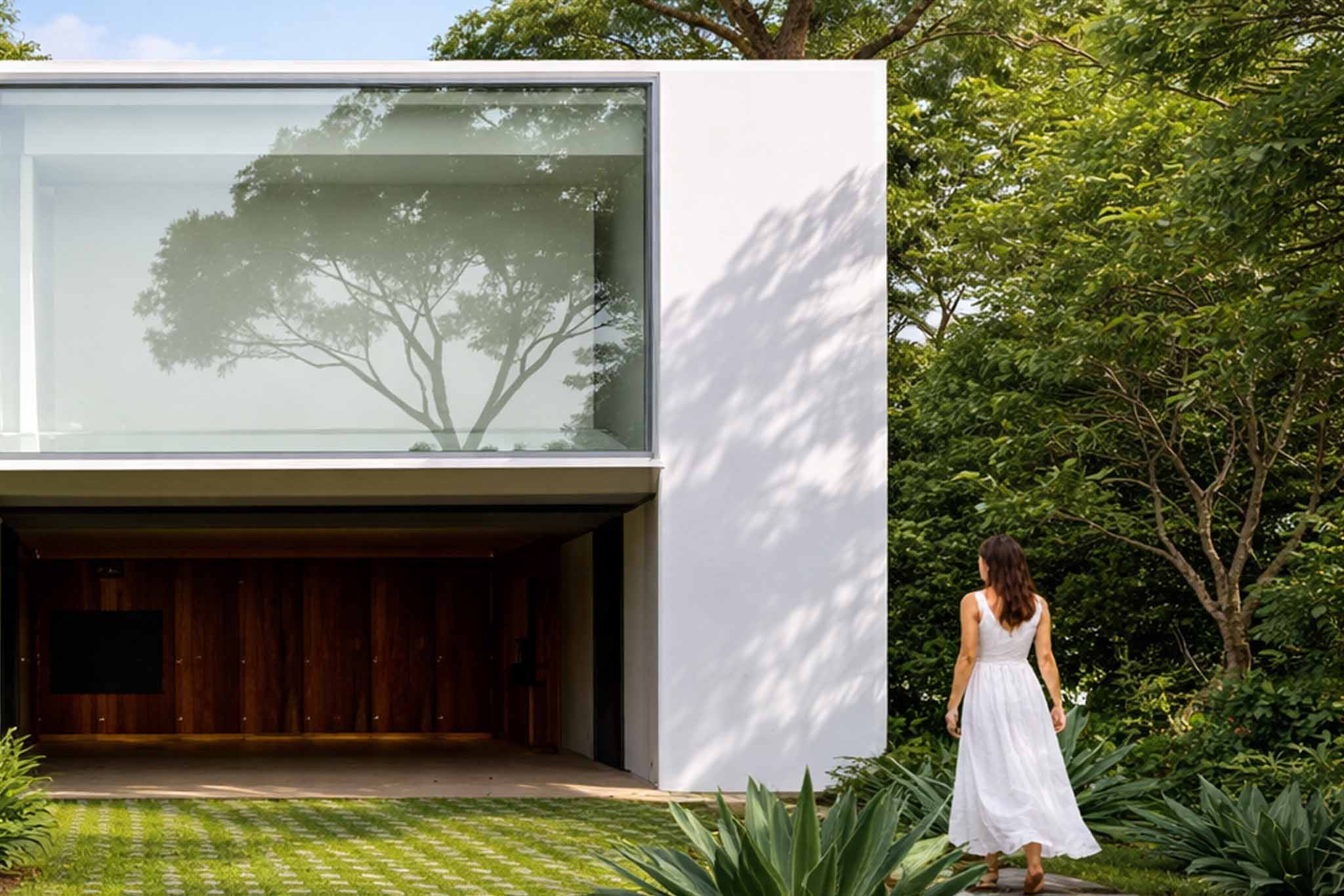Una casa serena y contemporánea donde la geometría pura dialoga con la naturaleza.