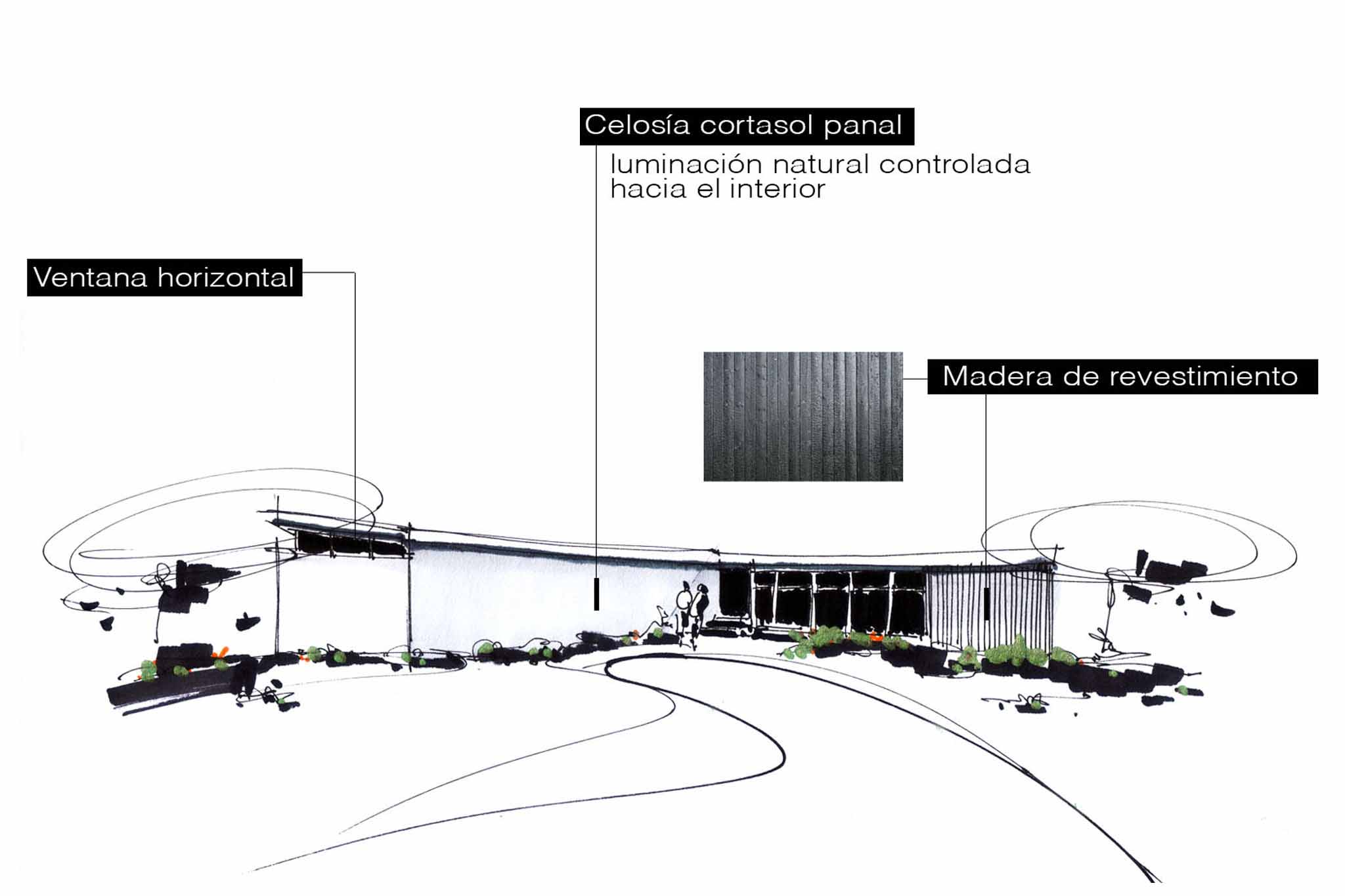 Se utiliza un frente principal de celosía que permite el ingreso de luz natural controlada hacia el interior.