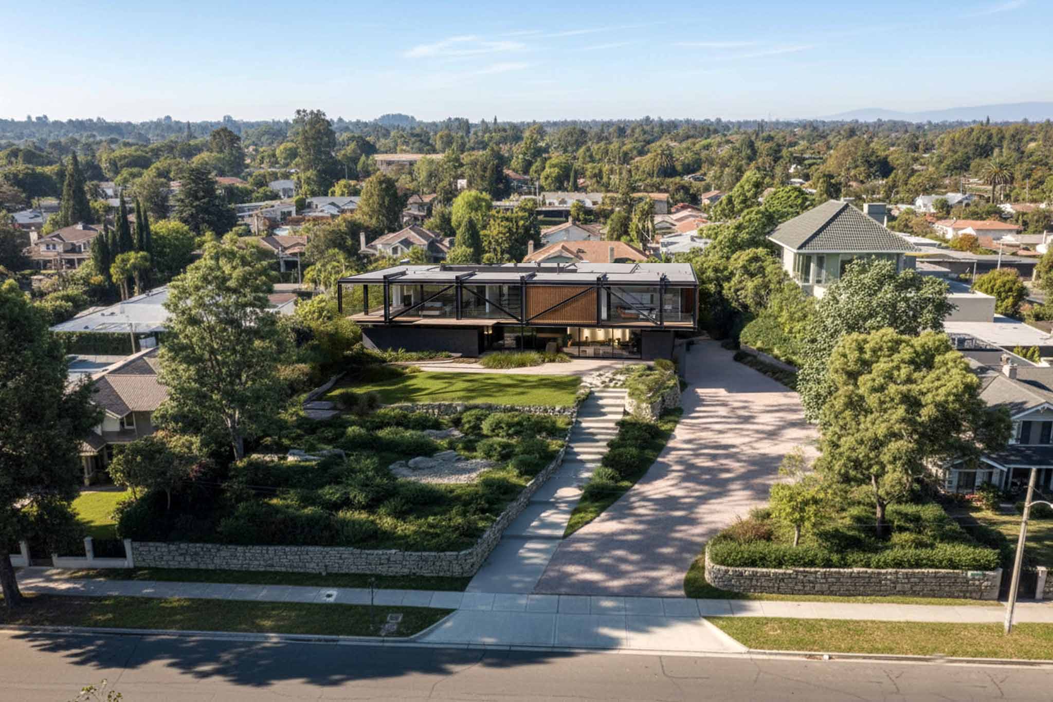 La casa se eleva como un manifiesto de la ligereza estructural y la transparencia habitable, fusionando acero expuesto y madera cálida en un equilibrio entre lo técnico y lo humano.
