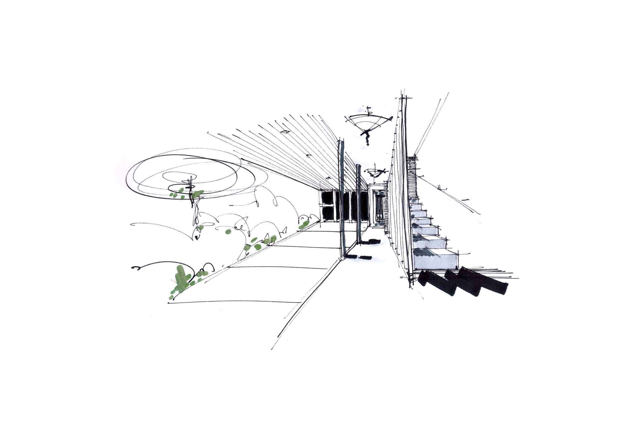 Su lenguaje formal racionalista, con volúmenes suspendidos y grandes superficies acristaladas, expresa una ética de apertura hacia el paisaje, en diálogo con el entorno natural, donde la arquitectura deja de ser límite para convertirse en puente entre el ser y su contexto