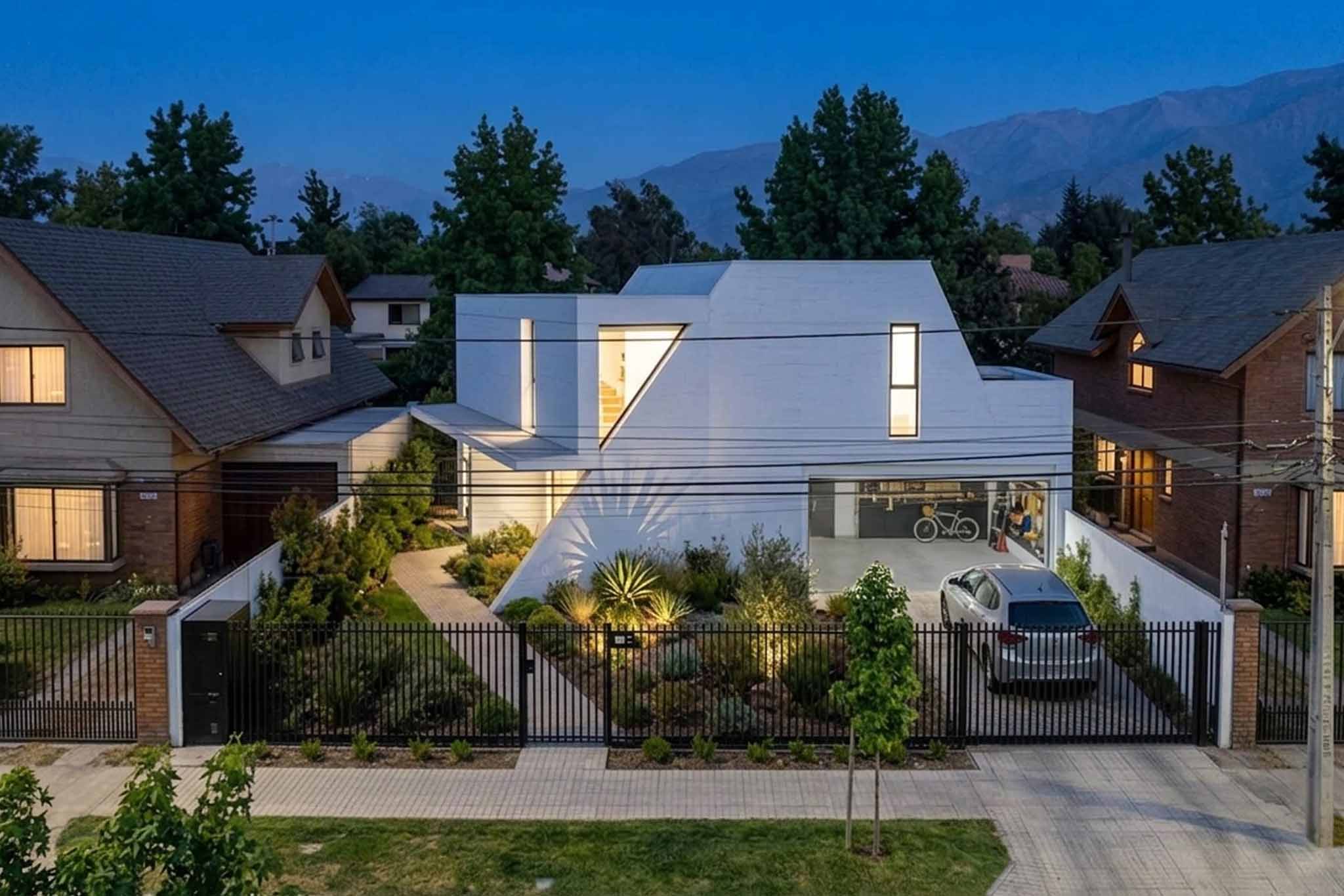 Una arquitectura que irrumpe con carácter contemporáneo en el tejido residencial tradicional. Sus volúmenes blancos, inclinados y precisos esculpen la luz y crean una composición dinámica que transmite movimiento y serenidad al mismo tiempo.
