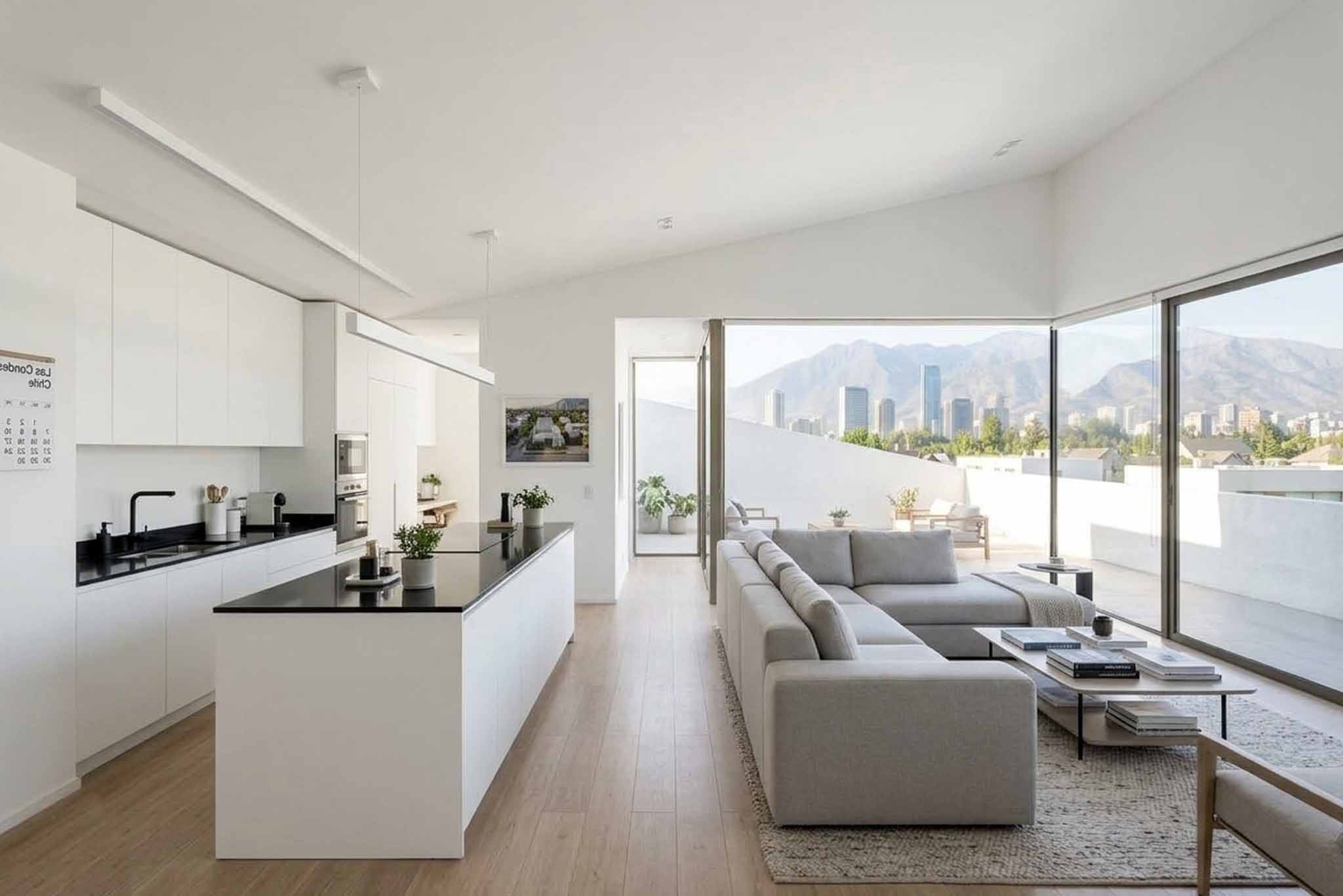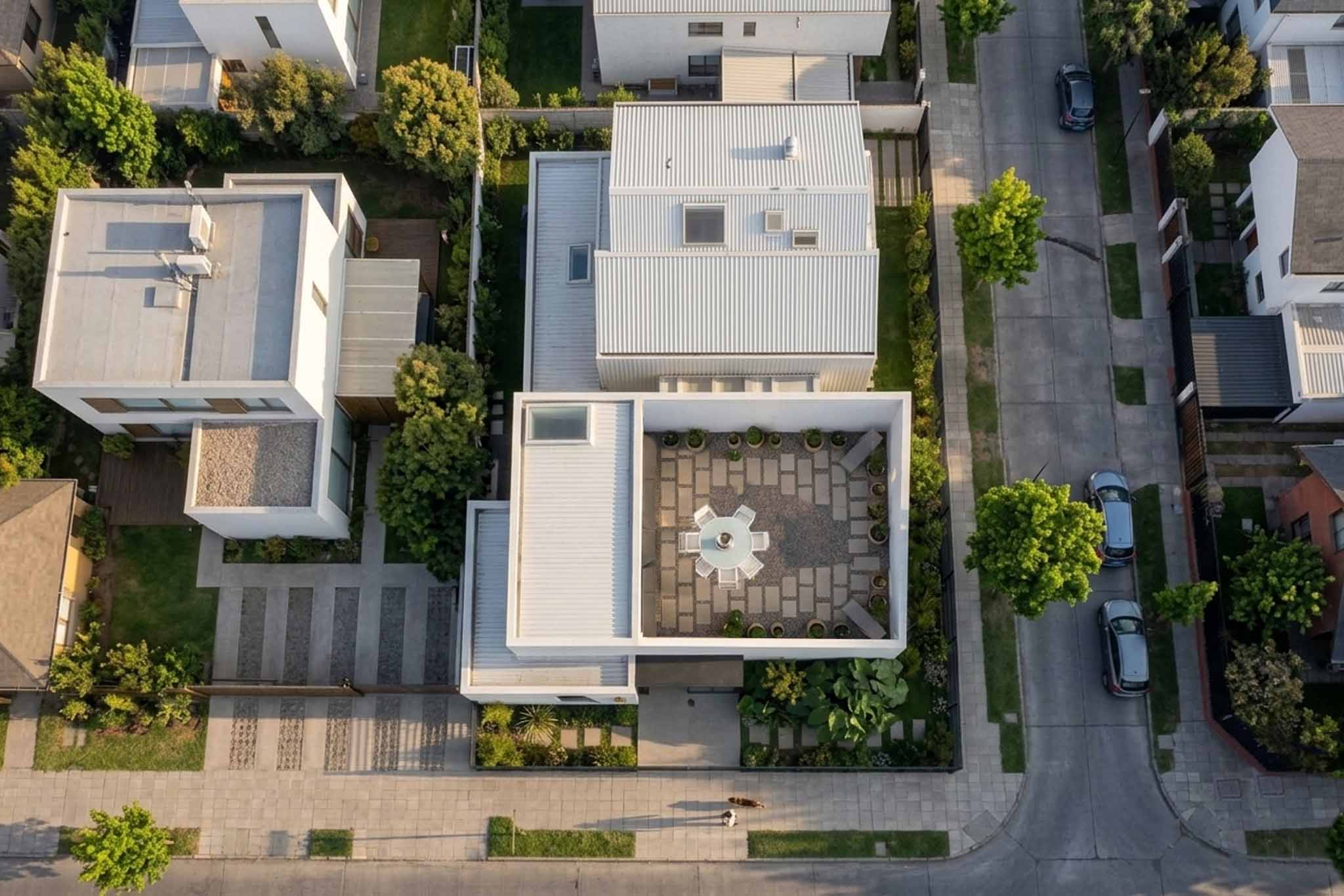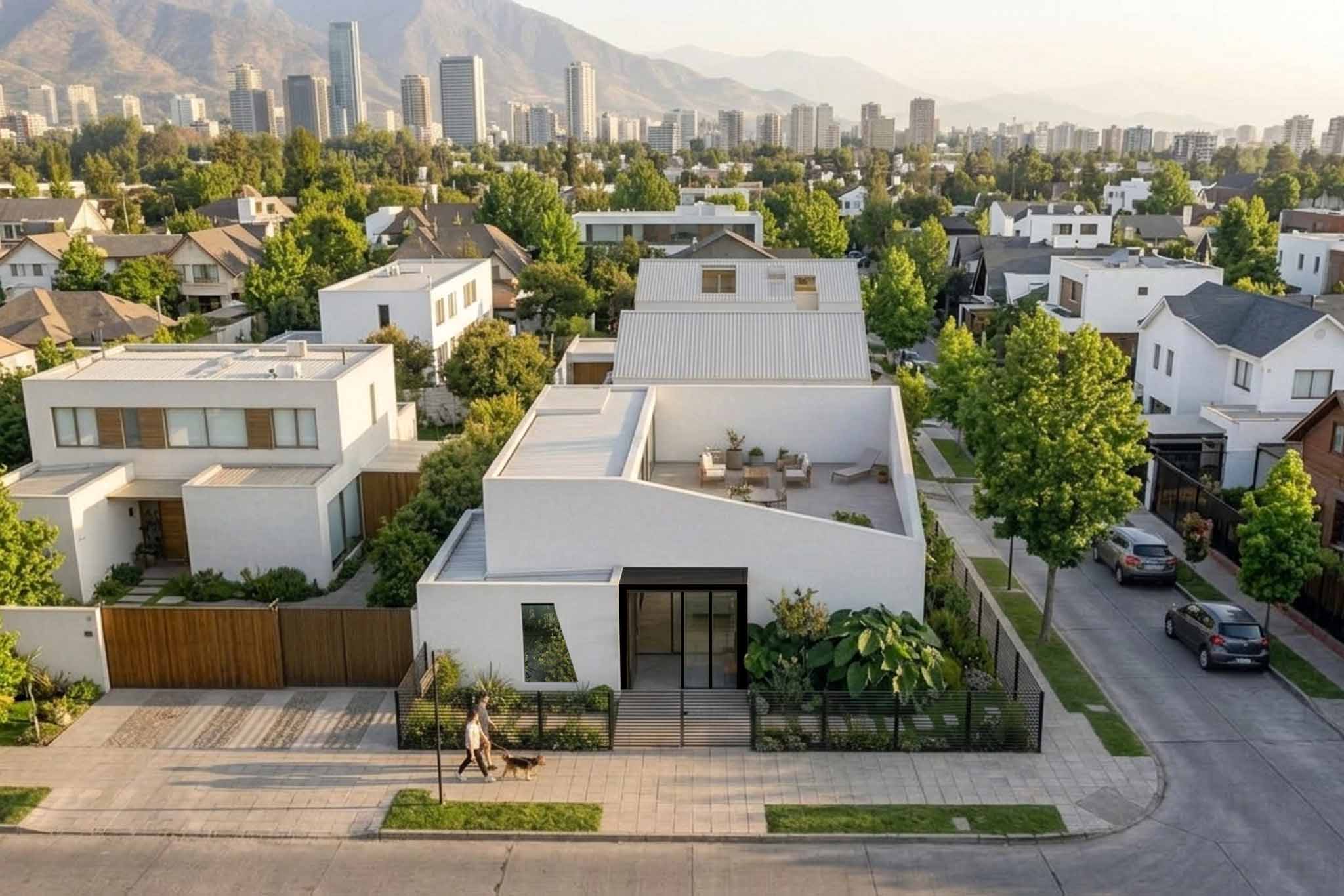 Esta vivienda es un santuario de luz y serenidad, una oda a la elegancia minimalista que dialoga con la naturaleza y la ciudad. La casa, de líneas puras y fachada blanca, se despliega en una serie de volúmenes interconectados, como un puzzle de geometría y vida.