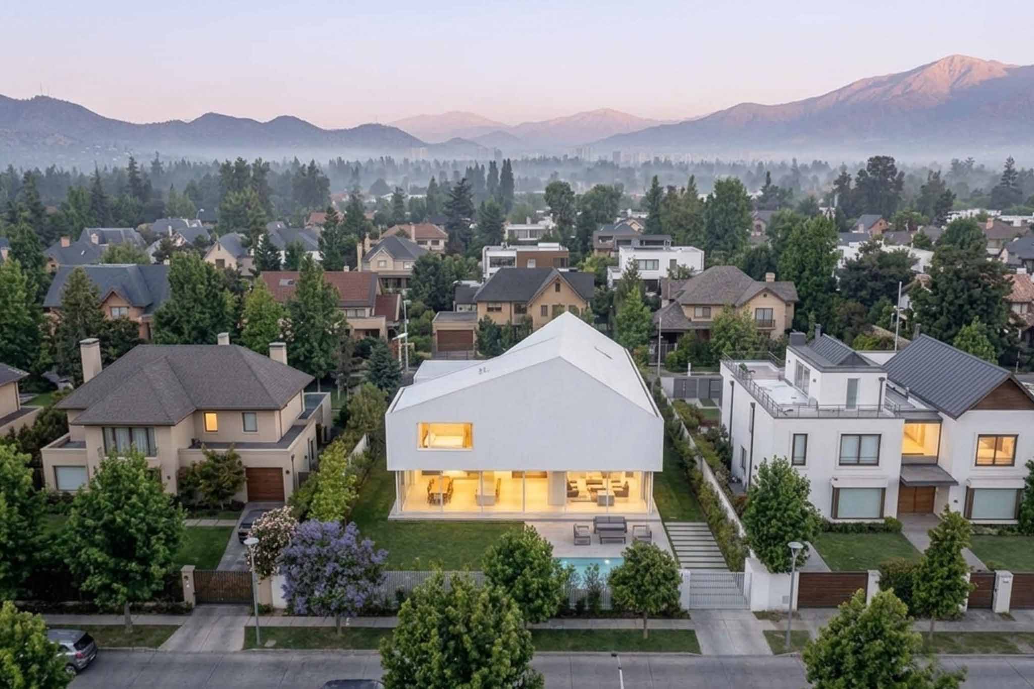 Esta casa se presenta como una reinterpretación serena de la forma tradicional del hogar, donde el volumen puro y el techo inclinado evocan refugio y simplicidad esencial.